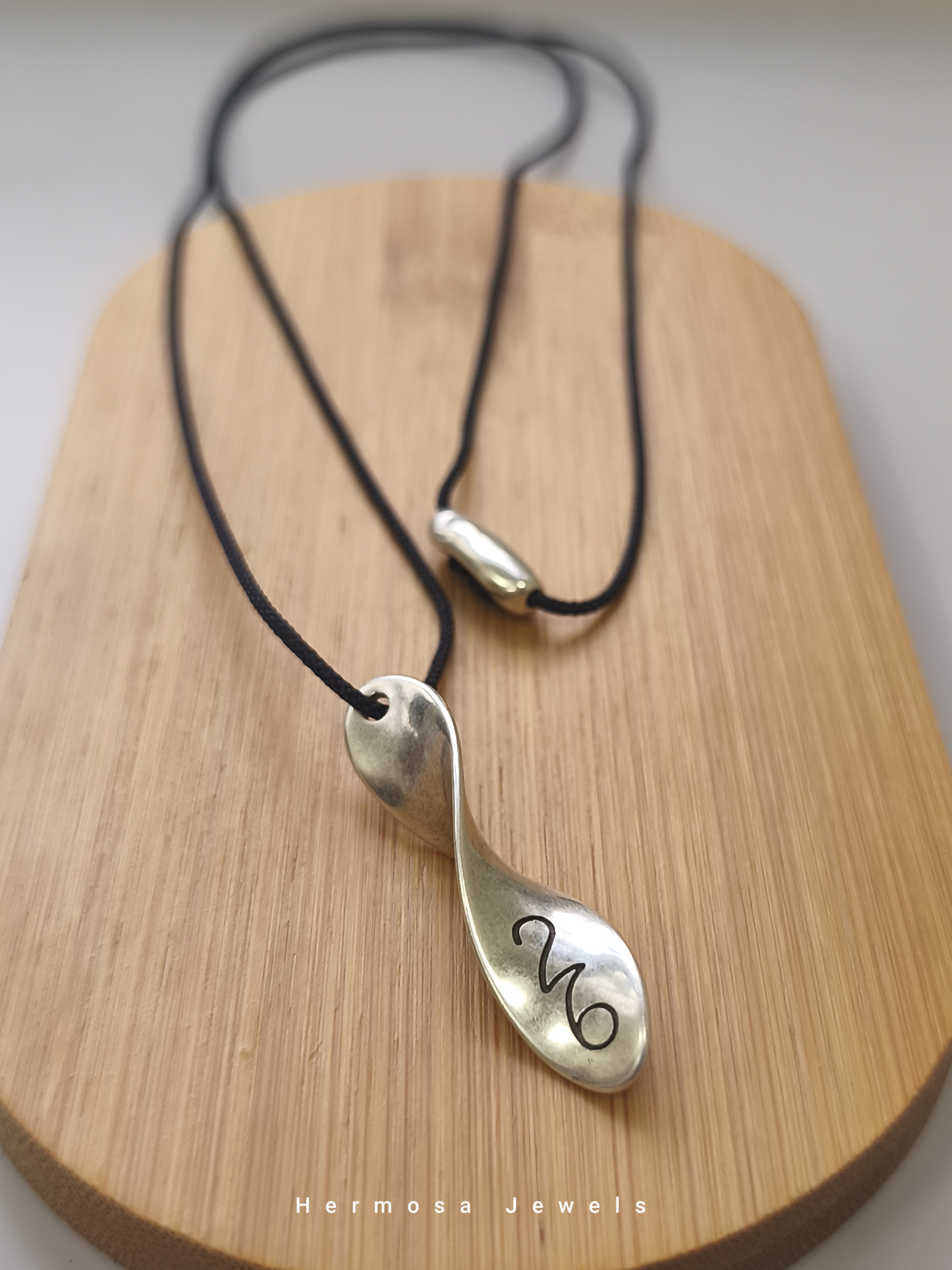 Μοντέρνο γούρι-κολιέ με αριθμό 26, διπλής όψης για να φοριέται με δύο τρόπους.